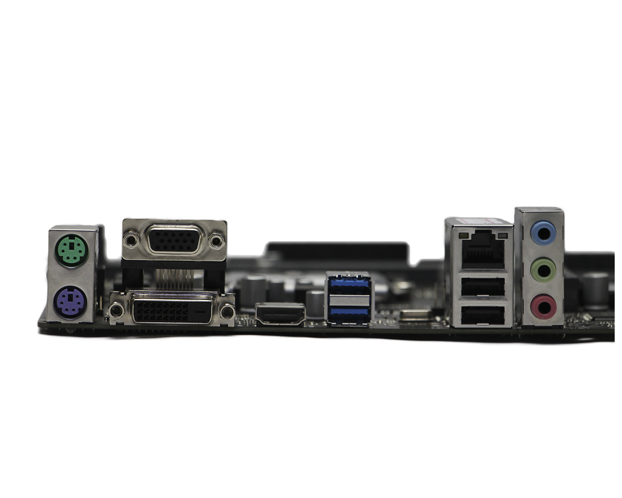 1x PS/2 (клавиатура ),1x PS/2 (мышь); 1x VGA, 1x DVI, 1x HDMI; 2x USB2.0; 2x USB3.1; 1x LAN RJ-45; 3x Audio jack