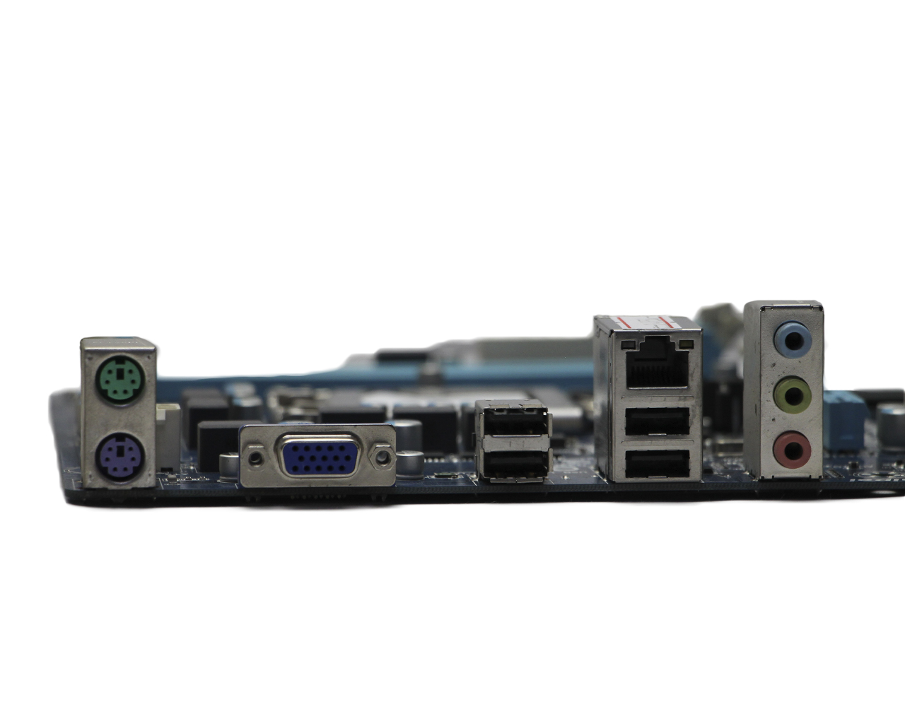 1x PS/2 (клавиатура ),1x PS/2 (мышь); 1x VGA; 4x USB2.0; 1x LAN RJ-45; 3x Audio jack |