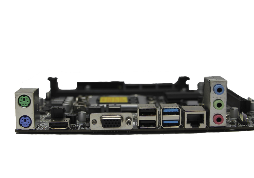 1x PS/2 (клавиатура ),1x PS/2 (мышь); 1x VGA, 1x HDMI; 2x USB2.0; 2x USB3.0; 1x LAN RJ-45; 3x Audio jack