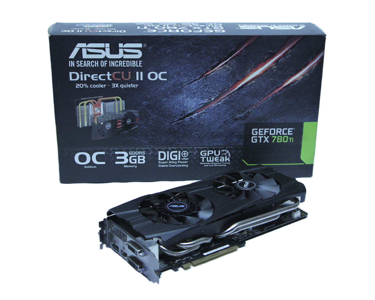 3Gb GDDR5 ASUS NVIDIA GeForce GTX 780 Ti 384 bit PCI-E 3.0 16x 2x DVI,1x HDMI,1x Display Port DirectX 12 (11.1) Питание 2х 8 pin Минимальная мощность блока питания - 600 Ватт