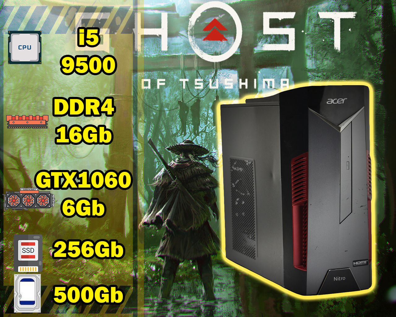 i5 9500/ 3.00-4.40 Ghz DDR4 16Gb SSD 256Gb HDD 500Gb 6Gb NVIDIA GeForce GTX1060 192 bit GDDR5 550W Компьютер бренд ACER