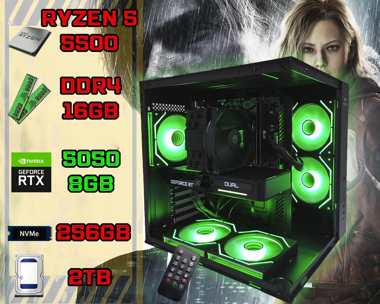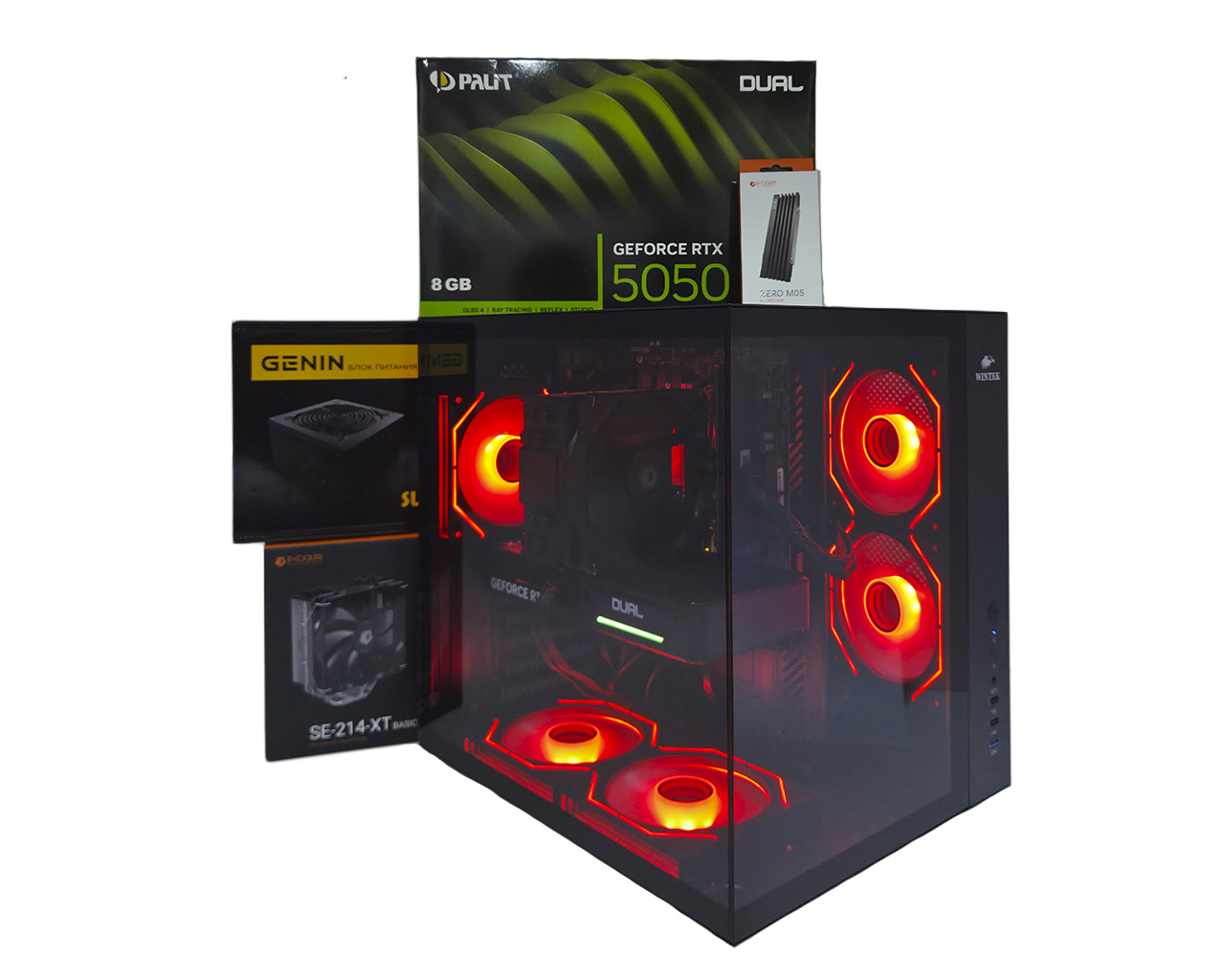 Ryzen 5 5500 3.60-4.20 Ghz DDR4 16Gb SSD М.2 NVMe 256Gb HDD 2Tb 8Gb NVIDIA GeForce RTX5050 128 bit GDDR6 Wintek 550W Игровой ПК с RGB подсветкой Дополнительный HDD для хранения Фото и Видео файлов .RGB управляемая подсветка через ДУ, Закалённое боковое и